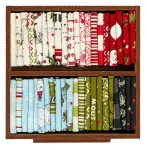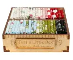 Includes forty-two 4" squares of fabric from the "Emmit and Ivy" fabric line by Sweetwater and a pattern to make the 10" Mini Quilt - all packaged in a 3.5" little wood box. Squares are approximately 4"